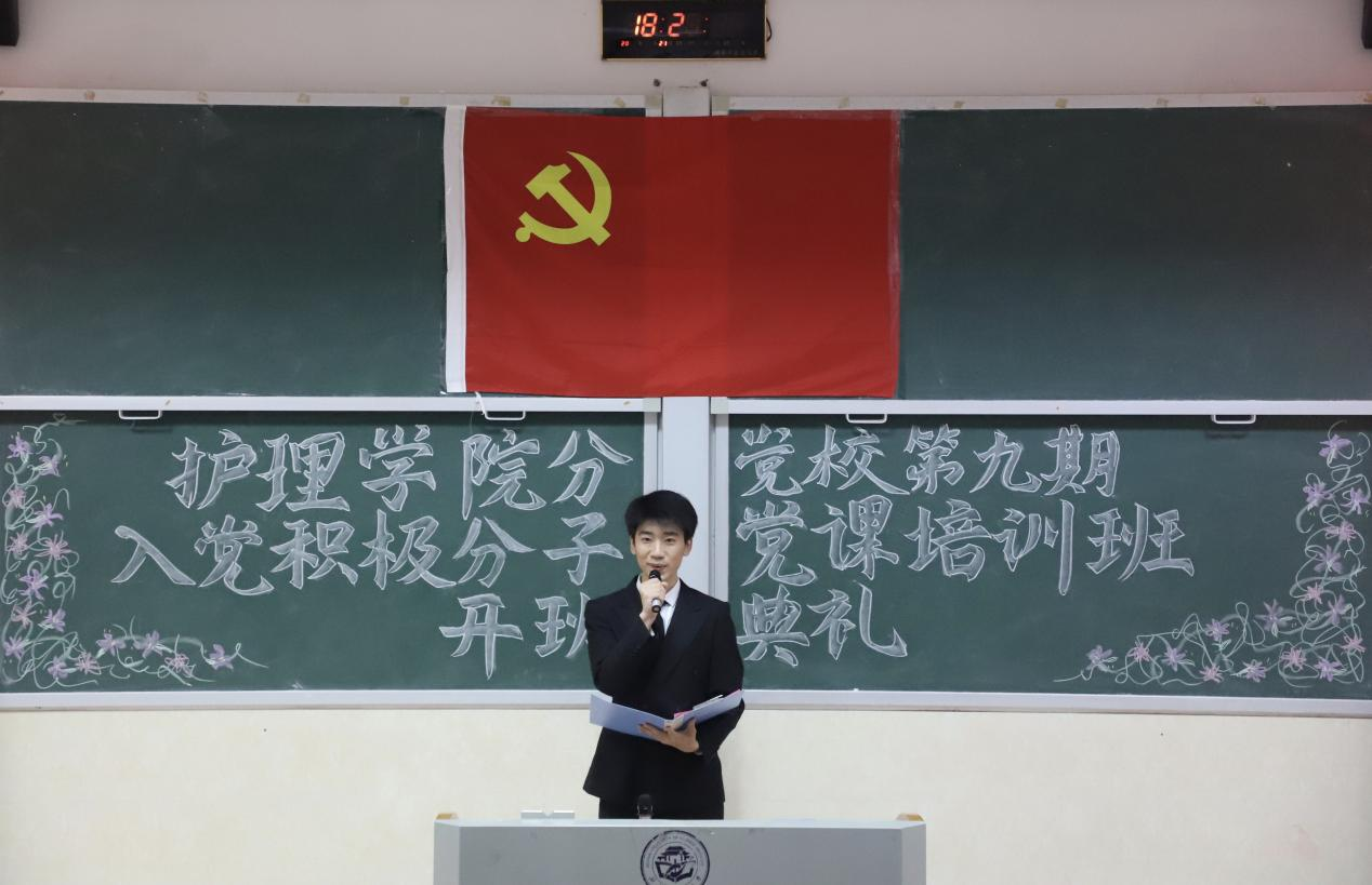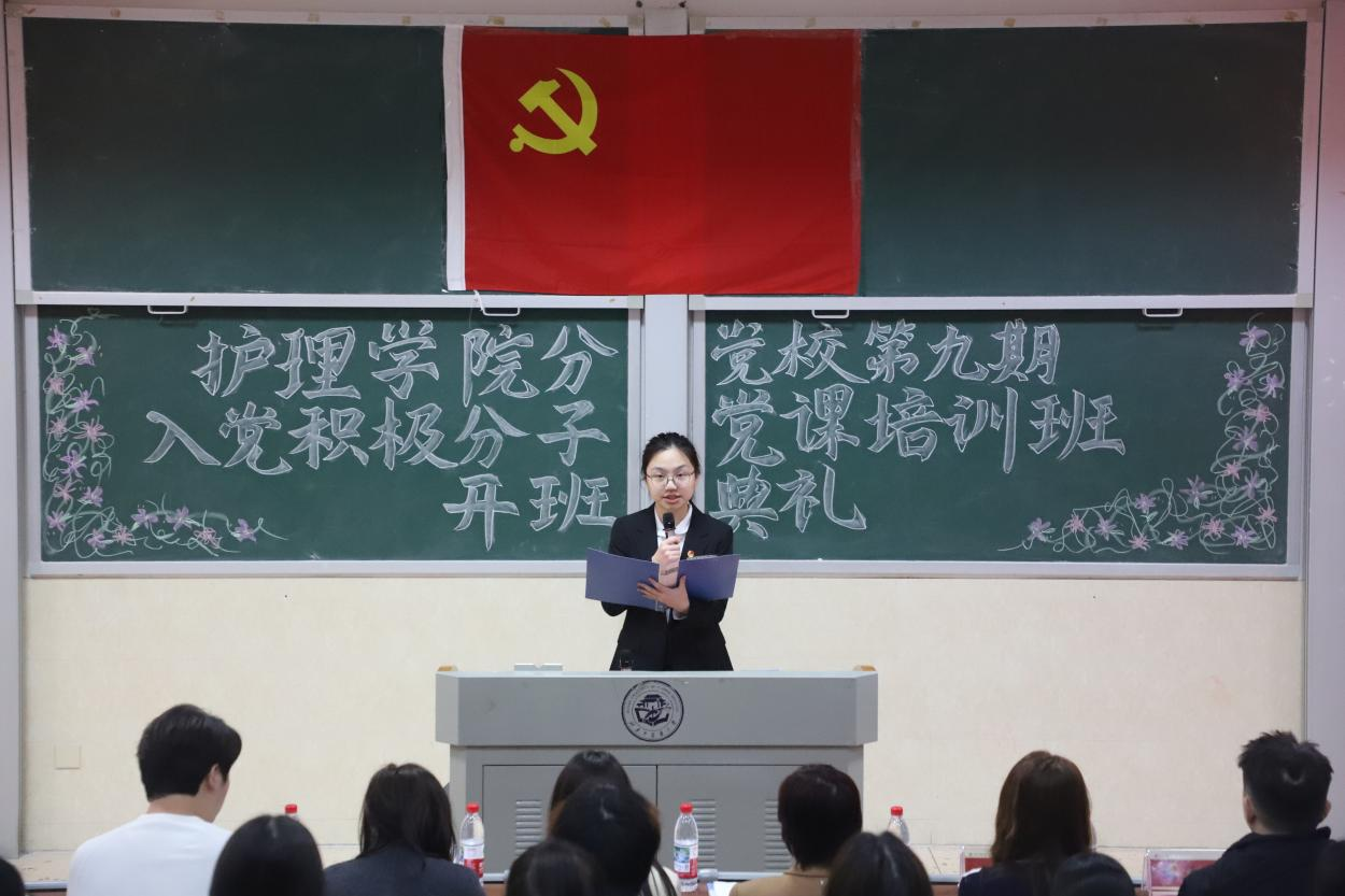 为扎实推进入党积极分子教育培养工作,夯实学院党建工作基础,2026年4月21日18时30分,湖南中医药大学护理学院分党校第九期入党积极分子党课培训班开班典礼在含浦校区济世楼3114教室隆重举行。护理学院党委书记蒋小剑、各学生党支部书记及第九期入党积极分子共96余人参加本次活动。