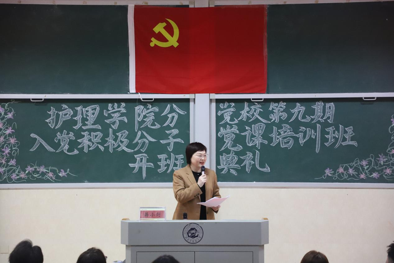 紧接着,护理学院党委书记蒋小剑老师向全体学员提出“深学、悟透、笃行”六字要求:深学党的理论政策与精神,悟透其中核心要义与道理,以笃行实干践行初心使命,坚持知行合一,争取早日成为一名优秀的共产党员。