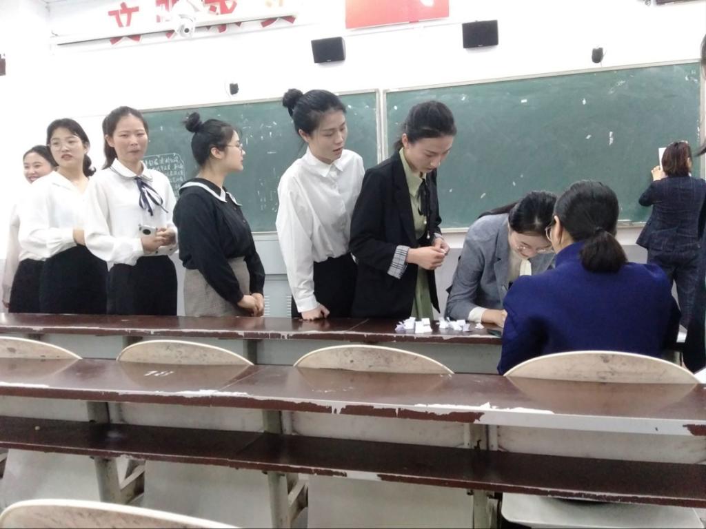 参加招聘的毕业生们在测量完身高后进行抽签,进入阅题室阅题,在五分钟阅题时间过后再依次进入会议室面试,面试者进入会议室后有两分钟自我介绍时间和三分钟回答老师问题的时间,面试完毕后退出教室,在面试结束后,由工作人员清理会场,招聘会结束。