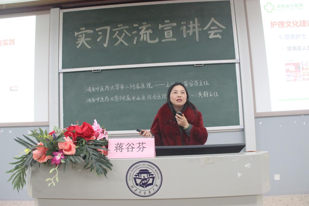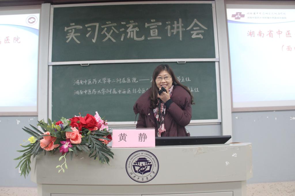 12月10日晚,我院特邀湖南中医药大学第二附属医院蒋谷芬主任及湖南省中医药研究院附属医院黄静主任于3117教室面对2016级全体学生开展实习交流宣讲会。陈偶英副院长、办公室陈红涛老师及学生科副科长黎亚老师参加了本次宣讲会。