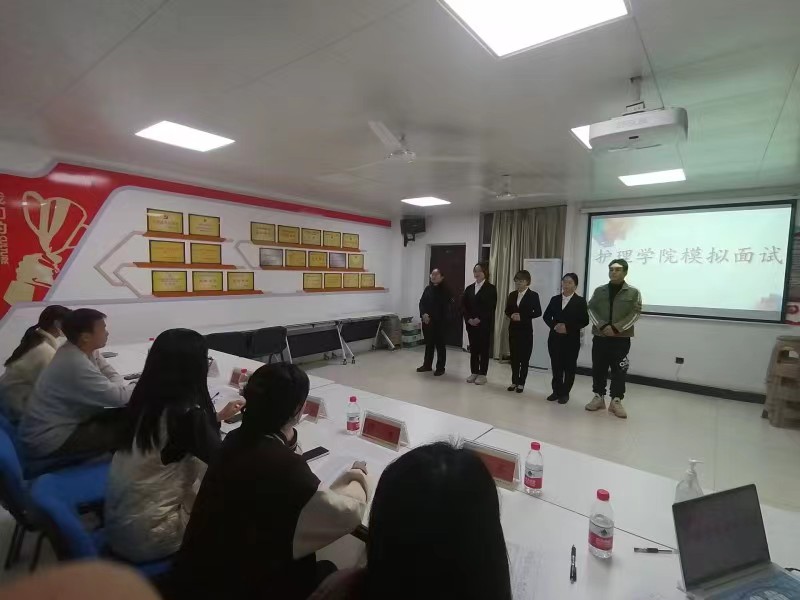 11月6日,21级护理六班一轮模拟面试在护理学院16栋会议室举行。