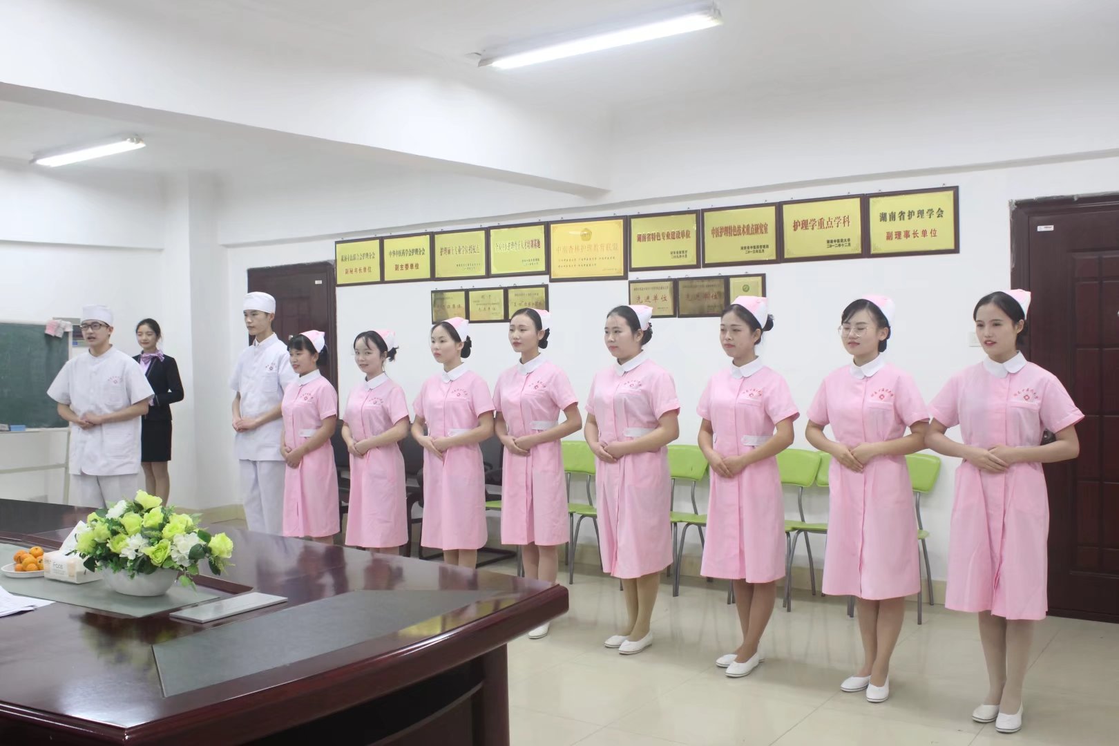 此次招聘会开始前15级实习生提前到达面试场地排队候场并做积极的自我练习,面试开始,面试者按5人一组依次进入会议厅进行面试。经过之前多次模拟实习面试,在这次面试中,学长学姐们的穿着准确,妆容得体,面带微笑,表现良好。经过面试,最终也确定了实习生的入选名单。