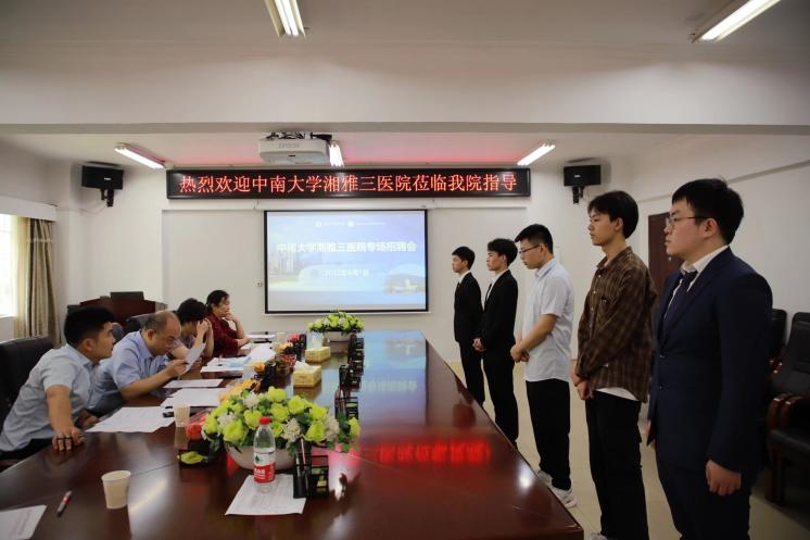 6月1日,中南大学湘雅三医院到我院举行专场招聘会,湘雅三医院各部门几余人参加了本次招聘会,护理学院院长罗尧岳同志全程参与本次招聘会。