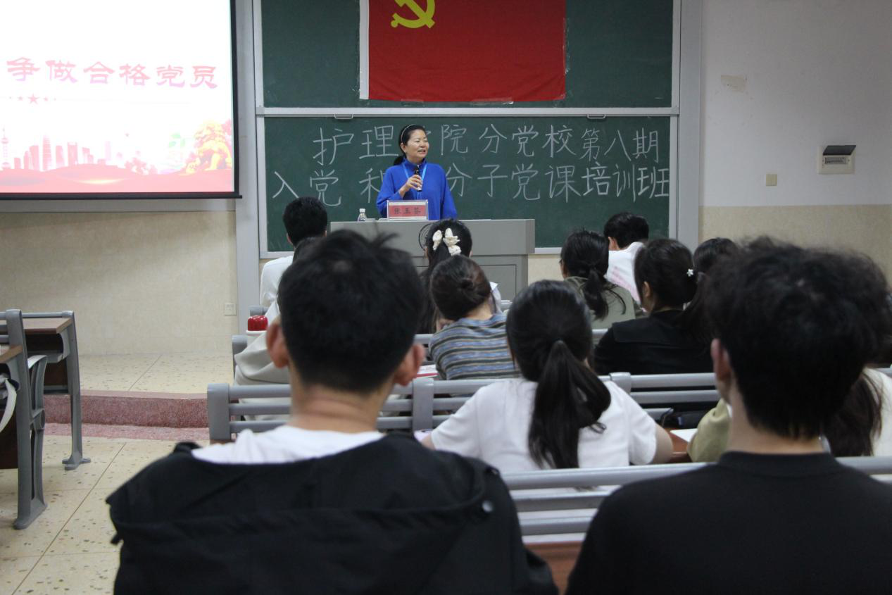 为深化入党积极分子对党的纪律认识,提升党性修养,2025年10月15日18时30分,湖南中医药大学党委委员、副校长张玉芬在济世楼109教室为护理学院第八期入党积极分子讲授“严守纪律,争做合格党员”的主题党课,护理学院党委副书记李宗霖、护理学院第四学生党支部书记郭浩辰及护理学院第八期入党积极分子全体学员参加学习。