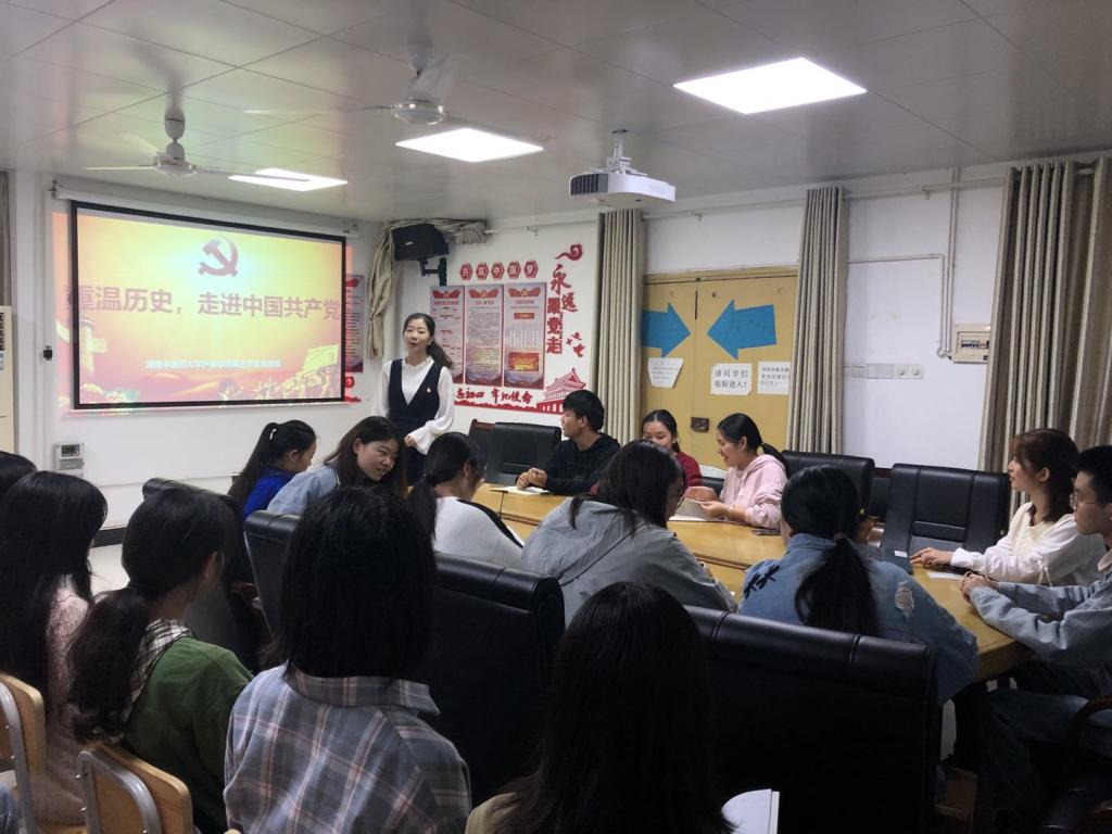 9月29日中午12点30分,护理学院第三学生支部书记蒋雪带领第三学生支部全体党员及部分入党积极分子,于学生科会议室开展“重温历史,走进中国共产党”主题党课。