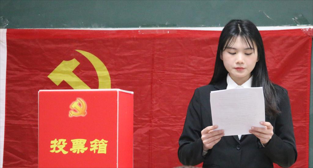 大会伊始,上一届支部委员会向支部大会作工作报告。工作报告对过去一年的工作进行了汇报,同时又提出以后的工作建设要求,殷切地希望学生党员能继续贯彻落实好二十大精神,为共建先进模范的学生党支部,为全面建设社会主义现代化国家而团结奋斗。接着大会一致通过了选举办法和监票人、计票人名单,介绍了新一届党支部委员候选人的基本情况。大会采用无记名差额选举方式,最终投票选举出邱致燕、米蕴智等5名同志成为第一学生党支部新一届支部委员,黄莹、林佳旭等5名同志为第二学生党支部新一届支部委员,蒋雪、周宇琪等3名同志为第三学生党支部新一届支部委员。到此,在热烈的掌声中,会议正式结束。
