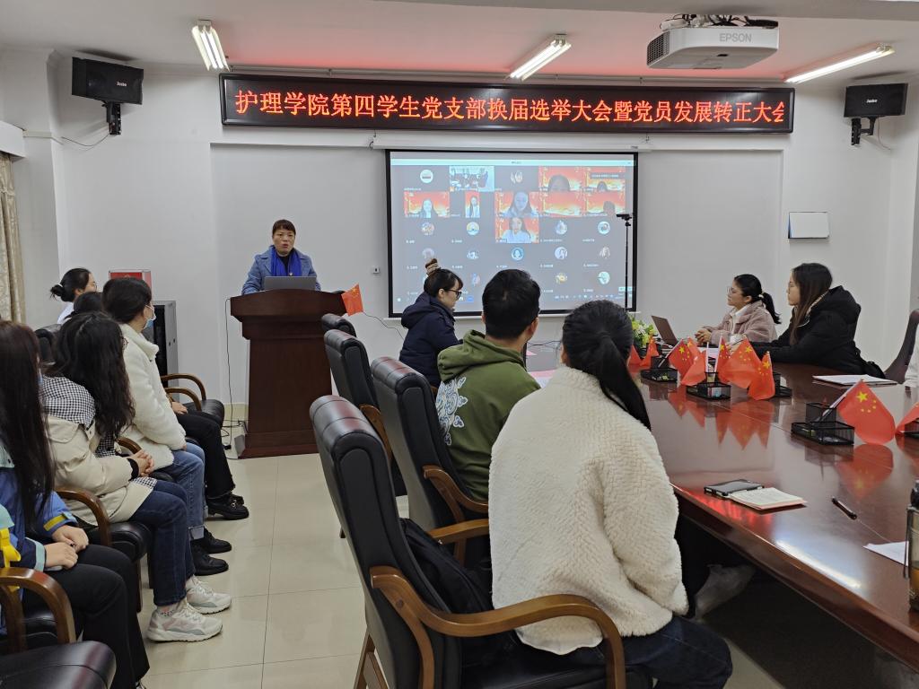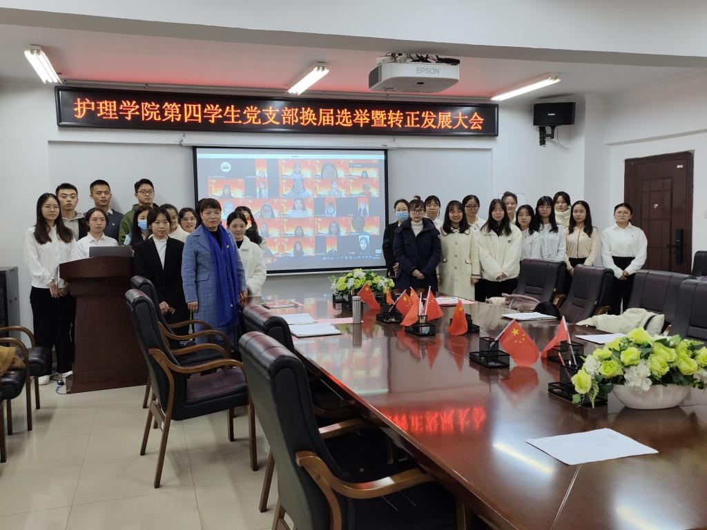 2022年11月30日上午9:00,护理学院第四学生党支部换届选举大会暨发展转正大会在护理学院学生科会议室举行。本次大会主要讨论新一届支部委员选举问题,俞纤、李子滢等9名预备党员按期转为中共正式党员问题及刘婷、易敏等5名同志的入党问题。护理学院副院长陈偶英老师、护理学院第四学生党支部书记邹灵玥同志及第四党支部全体党员、入党积极分子参加了本次会议。