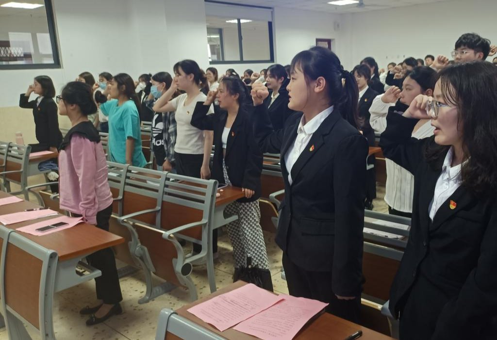 新发展党员代表易可欣同志及新转正党员代表范冰冰同志上台发言,表示将会不忘入党初心,牢记党的宗旨,认真遵守党的纪律和各项规整制度;加强政治理论知识水平,在学习教育中不断提炼自身党性,砥砺高尚品格;补足精神之钙,筑牢信仰之基,坚定为共产主义奋斗终身的信念,不负党组织与人民的重托。后由黄莹书记进行本次支部大会总结,对本次发展及转正的同志表示诚挚的祝贺并提出了三点期望:一是要立足于学,提升能力素质;二是要立足于建,提高党务水平;三是要立足于律,建树良好形象。黄莹书记的讲话亲切生动,饱含对青年党员的殷切希望和谆谆教诲。最后,全体党员宣读入党誓词。