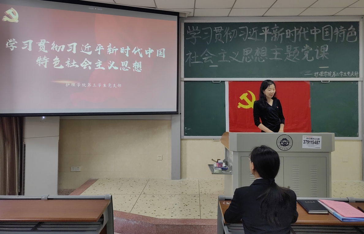 为了贯彻落实党中央的工作部署,教育引导学生党员在以学铸魂、以学增智、以学正风、以学促干上做好工作。2023年5月16日17:00,护理学院第三学生党支部学习贯彻习近平新时代中国特色社会主义思想主题教育党课于第三教学楼3403教室召开。本次党课由湖南中医药大学护理学院第三学生党支部书记蒋雪讲授,参与听讲的为护理学院在校正式党员及预备党员。