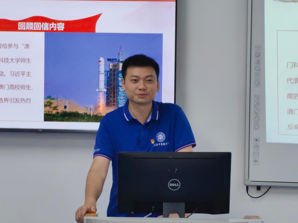 课程近半,陈红涛老师向大家讲解回信的意义及影响,澳门与内陆的本次航天合作取得的成果将推动整个港澳科技界的科技创新。课程接近尾声,陈红涛老师向大家列举了科技强国的三条措施:一是要持之以恒,潜心研究,坐的住冷板凳;二是要加强顶层设计,充分保证党发挥总揽全局协调各方的领导核心作用;三是要研发核心技术,全方面构建一流人才生态。最后,陈红涛老师就科技强国向学生党员提出了几条可行性的建议:一要树立科技强国的远大理想;二要注重理论与实践相结合的能力;三要培养善于发现问题并解决问题的能力。