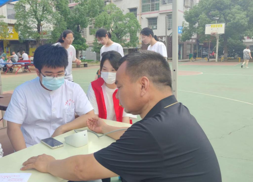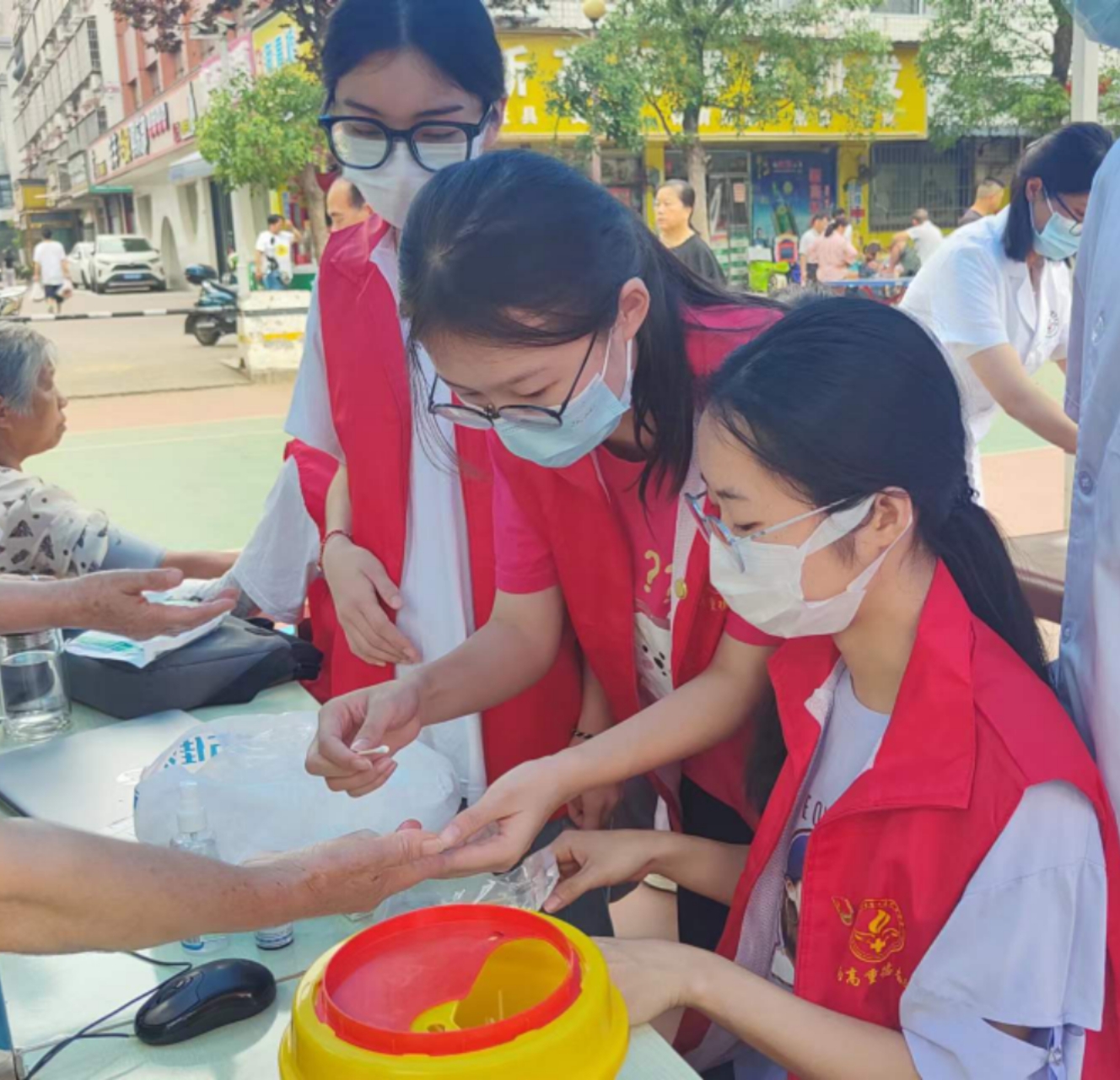 为深入推进党员“进小区、送服务、作表率、树形象”,落实党员同志进小区志愿服务工作,增强党员责任意识、服务意识,充分发挥基层党组织战斗堡垒作用和党员先锋模范作用,用实际行动开展社区志愿服务活动,湖南中医药大学护理学院党支部联合学士街道社区卫生服务中心党支部联合组织开展了“党员进小区志愿服务”活动。2023年6月16日上午7点30分,由杨艳,杨金花,冯晓琳,吉彬彬等职工支部教师代表带队,护理学院党员事务管理中心牵头组织党员志愿者与护理学院义诊队志愿者一起出发参加此次活动。