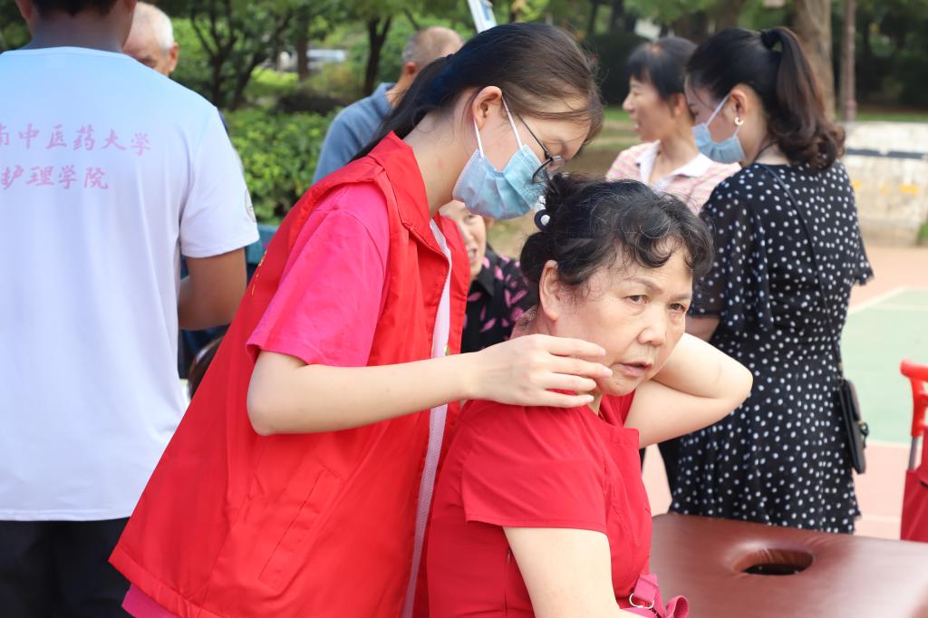 到达裕园社区后,党员同志们分头行动,有的在现场布置问诊台;有的在小区门口、主干道、人行道引导居民有序排队;有的为社区居民量血压,量身高体重,测血糖;有的为居民提供推拿服务并协助老师进行中医问诊。参与此次活动的居民说:“这次带队老师和学生党员都特别专业,我们咨询的健康问题都耐心解答,从用药、饮食等方面进行指导,并叮嘱我们定期监测血糖、控制血脂、血压,合理饮食,适当锻炼,增强身体抵抗力。”学生党员们踏实肯干,相互配合,有条不紊地开展工作,受到社区居民的一致称赞。