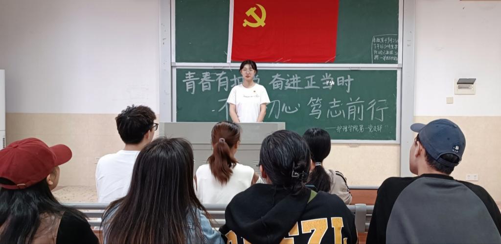 为了提高预备党员们的党性修养,考察他们是否具有向党组织靠拢的思想觉悟和作为新时代青年高尚坚定的理想信念。2023年9月25日,护理学院第一学生党支部在第三教学楼3602教室展开了“青年有担当,奋进正当时:不忘初心,笃志前行”主题党课活动,由代理支委张汉亮作为主讲人,带领一支部全体预备党员感悟“笃行精神”。