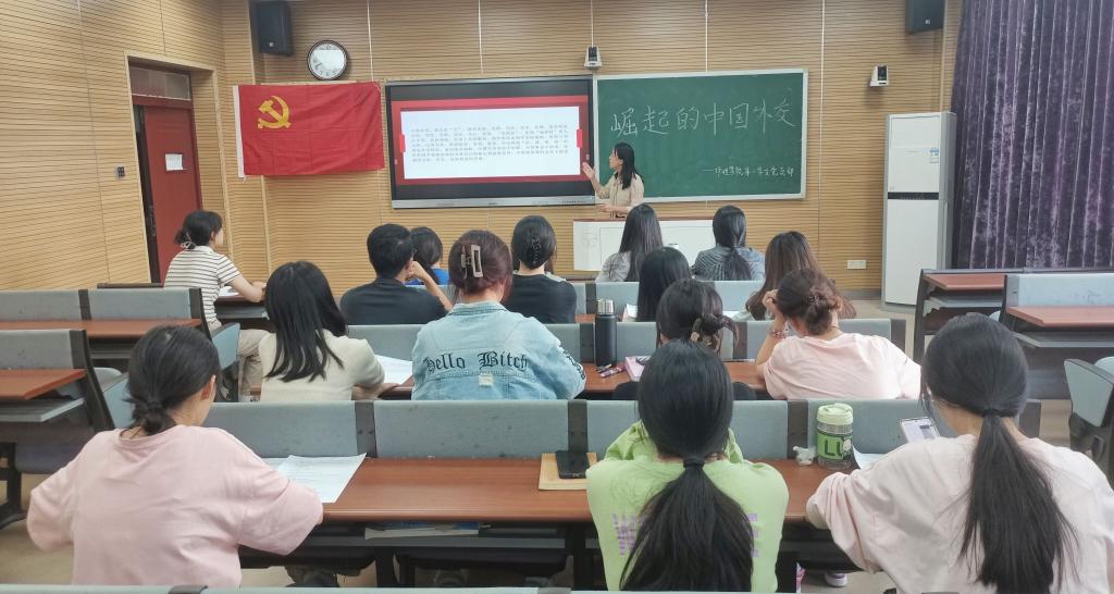 为响应第三届一带一路的顺利召开和提升学生党员国家认同感与自豪感,2023年10月18日下午16:30,护理学院第一学生党支部于3400教室开展了“崛起的中国外交”主题的党课活动,第一学生党支部书记邱致燕老师及第一学生党支部部分预备党员参与了此次活动。