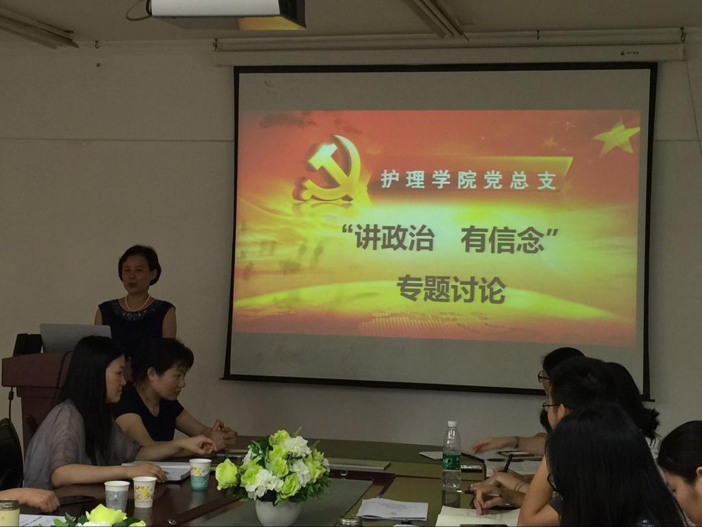 会上,每个部门委派一名党员老师代表本部门围绕“讲政治有信念”这一主题发言。发言代表包括基础护理教研室主任易霞教授、中医护理教研室杨艳老师、人文护理教研室主任李东雅教授、内科护理教研室主任陈偶英教授、实验中心主任朱建华老师、外科护理教研室吉彬彬老师、院办朱正刚老师。其他党员老师也积极参与讨论,查找自身存在的问题,并表示按照“两学一做”学习教育安排认真开展学习,努力提高思想素养,提高工作水平,爱岗敬业,真正做到“讲政治、有信念”,做合格党员。