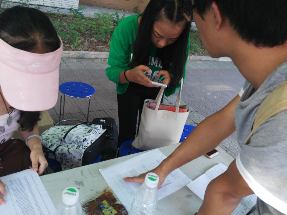 2016年9.3日学生党员们以高效、迅速、服务至上为宗旨,在最短的时间内为小鲜肉们办理好相关的手续,解答学生以及家长的疑惑。