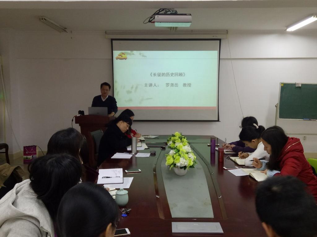 12月1日中午,护理学院职工党支部组织支部全体党员在学院会议室开展了“学习长征精神”党课教育活动。党课主讲人为护理学院党总支书记罗尧岳,护理学院职工党支部全体成员参会。