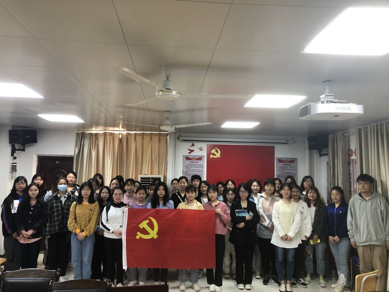 会议中,蒋雪书记和我们回顾了中国共产党成立以来所经历的风风雨雨,带领大家观看红色电影《开国大典》全面地讲解了党的百年奋斗的光辉历程和历史性贡献,视频中,毛泽东等人看着远方的国旗冉冉升起,整齐的军队踏着正步前进,不禁让人热血澎湃,随着一句铿锵有力的中华人民共和国中央人民政府成立了!全场会议气氛被推向了高潮。回顾过往不忘初心,展望未来戮力前行。近年来我国快速发展,在各个领域,尤其是航天领域上取得了巨大成就。擘画祖国前景蓝图,明确未来前进方向,作为青年一代的我们更要努力前进,紧接着蒋雪书记对我们进行了廉政教育,反复强调,作为大学生的我们虽然还没有步入社会,但是在学校应要注意作为一名党员的综合素质和基本道德素养,要用党的光荣传统和优良作风砥砺初心使命、凝聚奋斗力量,努力学习奋发向上,以实际行动立标杆、作示范。党课反响热烈,学生党员们结合自身实际,畅谈学习感想与体会