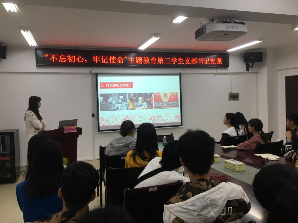 为进一步增强党员的党性修养,扎实推进“不忘初心、牢记使命”主题教育,10月14日上午12时,护理学院第三学生支部书记黎亚主讲的专题党课“不忘初心,永葆共产党员的政治本色”在院办会议室开展,第三学生支部党委联系人陈偶英副院长及支部全体在校学生党员参加。
