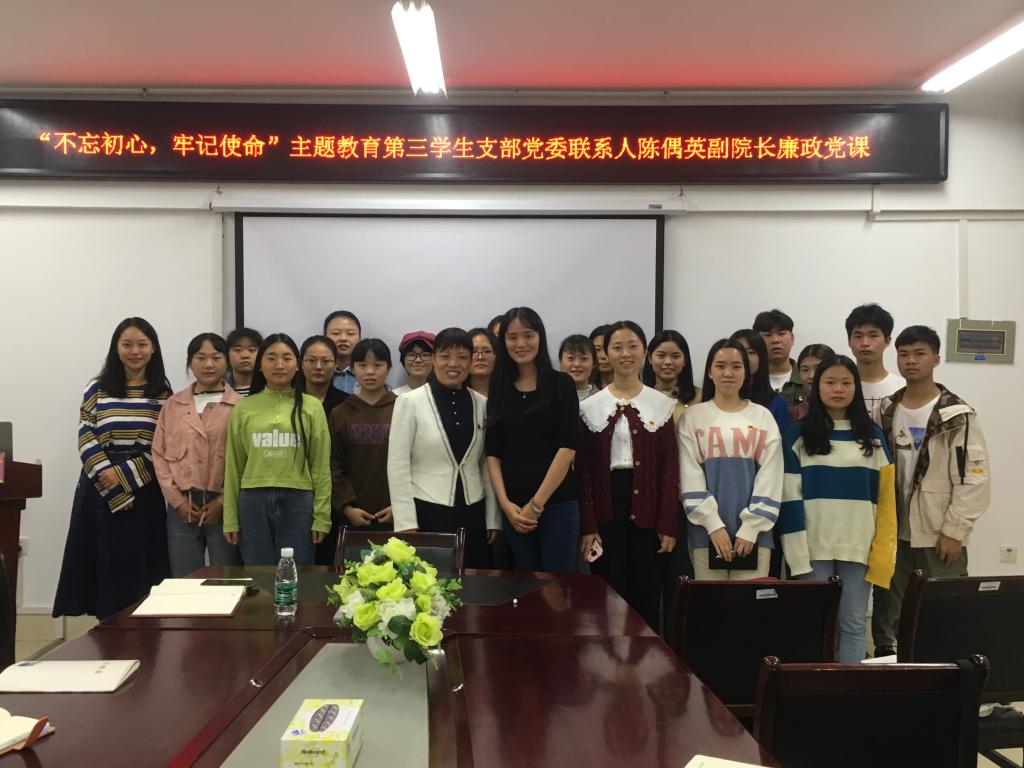 为进一步筑牢学生党员廉洁自律思想防线,自觉增强“免疫力”,深化反腐倡廉建设,10月12日上午10时,由护理学院党委委员、副院长、第三学生支部联系人陈偶英教授主讲的大学生廉政教育专题党课在学院会议室开展。第三学生支部书记黎亚老师及全体在校党员参加了此次党课学习。